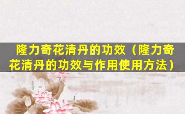 隆力奇花清丹的功效(隆力奇花清丹的功效与作用使用方法)