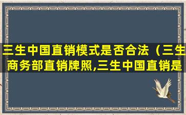 三生中国直销模式是否合法(三生商务部直销牌照,三生中国直销是否合法)