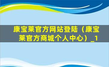 康宝莱官方网站登陆(康宝莱官方商城个人中心)