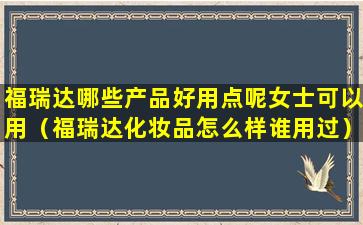 福瑞达哪些产品好用点呢女士可以用(福瑞达化妆品怎么样谁用过)
