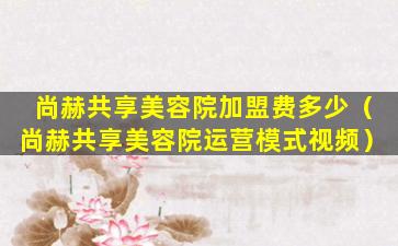 尚赫共享美容院加盟费多少(尚赫共享美容院运营模式视频)