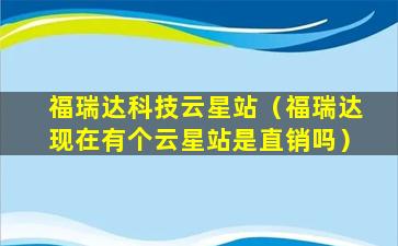福瑞达科技云星站(福瑞达现在有个云星站是直销吗)