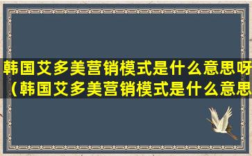 韩国艾多美营销模式是什么意思呀(韩国艾多美营销模式是什么意思呀英文)