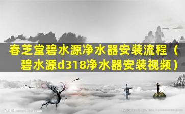 春芝堂碧水源净水器安装流程(碧水源d318净水器 安装视频)