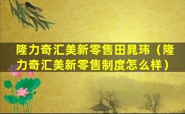 隆力奇汇美新零售田晁玮(隆力奇汇美新零售制度怎么样)