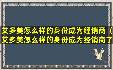 艾多美怎么样的身份成为经销商(艾多美怎么样的身份成为经销商了)