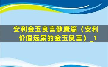 安利金玉良言健康篇(安利价值远景的金玉良言)