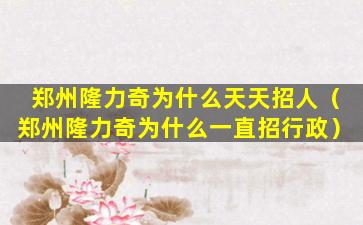 郑州隆力奇为什么天天招人(郑州隆力奇为什么一直招行政)