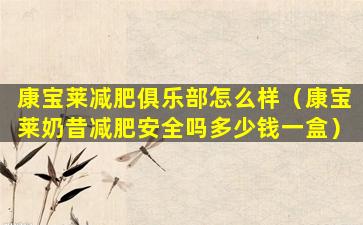 康宝莱减肥俱乐部怎么样(康宝莱奶昔减肥安全吗多少钱一盒)