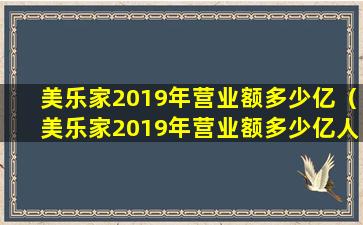 美乐家2019年营业额多少亿(美乐家2019年营业额多少亿人民币)