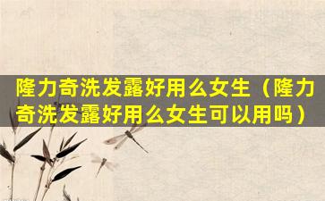 隆力奇洗发露适合女生使用,但具体效果因人而异。如果你有干性发质, 建议使用保湿型的洗发露。如果你有油性发质,可以使用控油型的洗发露。