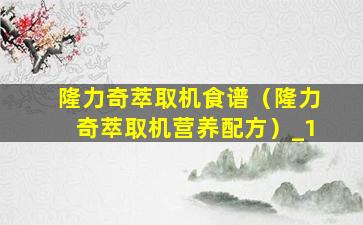 隆力奇萃取机食谱(隆力奇萃取机营养配方)