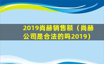 2019尚赫销售额(尚赫公司是合法的吗2019)