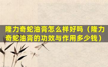 隆力奇蛇油膏怎么样好吗(隆力奇蛇油膏的功效与作用多少钱)