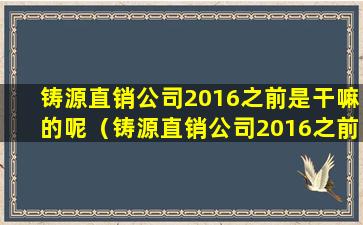 铸源直销公司2016之前是干嘛的呢(铸源直销公司2016之前是干嘛的呢视频)