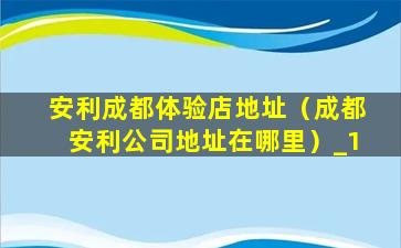 成华区体验中心: 成都市成华区东三环路西三段666号广发大厦1楼安利体验店