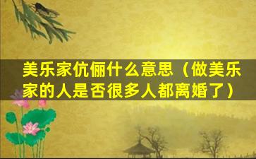 美乐家伉俪什么意思(做美乐家的人是否很多人都离婚了)