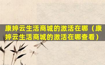 康婷云生活商城的激活在哪(康婷云生活商城的激活在哪查看)