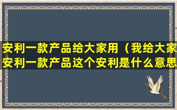 安利一款产品给大家用(我给大家安利一款产品这个安利是什么意思)
