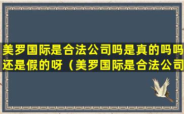 美罗国际是合法公司吗是真的吗吗还是假的呀(美罗国际是合法公司吗是真的吗吗还是假的呀知乎)