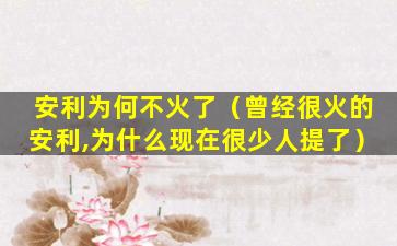 安利为何不火了(曾经很火的安利,为什么现在很少人提了)