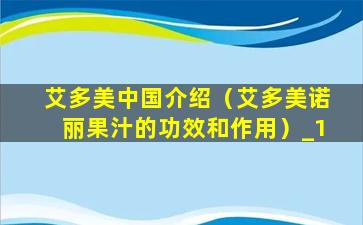 艾多美中国介绍(艾多美诺丽果汁的功效和作用)