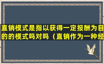 1、直销模式是指以获得一定报酬为目的的模式吗对吗