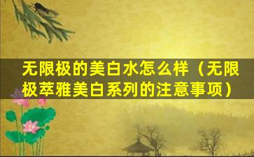 无限极的美白水怎么样(无限极萃雅美白系列的注意事项)