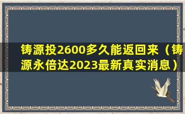 铸源投2600多久能返回来(铸源永倍达2023最新真实消息)