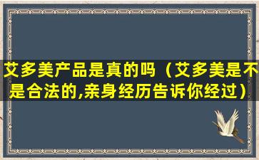 艾多美产品是真的吗(艾多美是不是合法的,亲身经历告诉你经过)