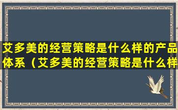 艾多美的经营策略是什么样的产品体系(艾多美的经营策略是什么样的产品体系呢)