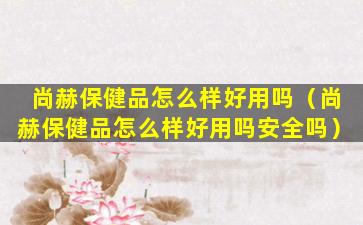 尚赫保健品怎么样好用吗(尚赫保健品怎么样好用吗安全吗)