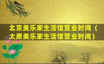 北京美乐家生活馆营业时间(太原美乐家生活馆营业时间)