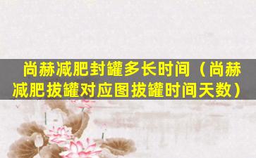 尚赫减肥封罐多长时间(尚赫减肥拔罐对应图拔罐时间天数)