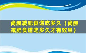尚赫减肥食谱吃多久(尚赫减肥食谱吃多久才有效果)