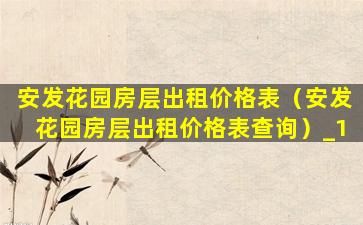 安发花园房层出租价格表(安发花园房层出租价格表查询)