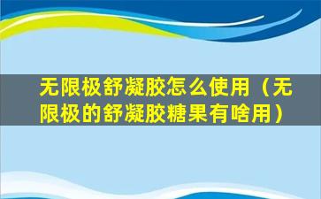 无限极舒凝胶怎么使用(无限极的舒凝胶糖果有啥用)