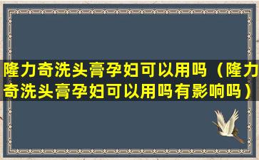 2、隆力奇洗头膏孕妇可以用吗有影响吗
