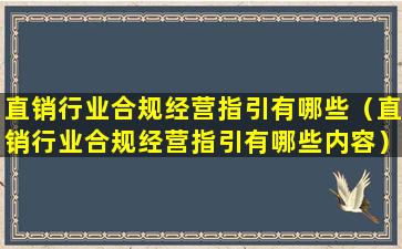 直销行业合规经营指引有哪些(直销行业合规经营指引有哪些内容)