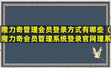 隆力奇管理会员登录方式有哪些(隆力奇会员管理系统登录官网理系统登录)