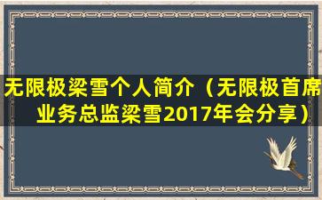 无限极梁雪个人简介(无限极首席业务总监梁雪2017年会分享)