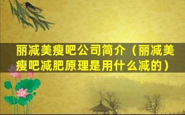 丽减美瘦吧公司简介(丽减美瘦吧减肥原理是用什么减的)