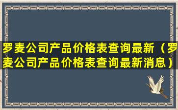 罗麦公司产品价格表查询最新(罗麦公司产品价格表查询最新消息)