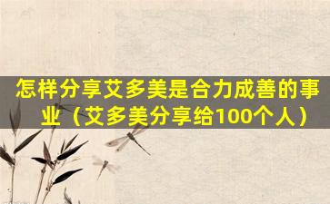 怎样分享艾多美是合力成善的事业(艾多美分享给100个人)