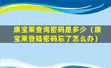 康宝莱查询密码是多少(康宝莱登陆密码忘了怎么办)