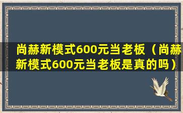 尚赫新模式600元当老板(尚赫新模式600元当老板是真的吗)