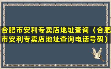 合肥市安利专卖店地址查询(合肥市安利专卖店地址查询电话号码)