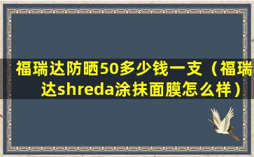 福瑞达防晒50多少钱一支(福瑞达shreda涂抹面膜怎么样)