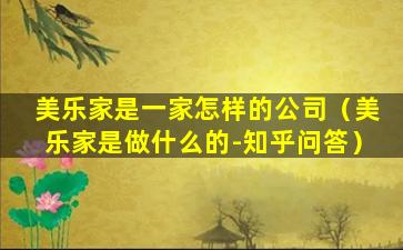 美乐家是一家怎样的公司(美乐家是做什么的-知乎问答)