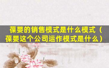 葆婴的销售模式是什么模式(葆婴这个公司运作模式是什么)
